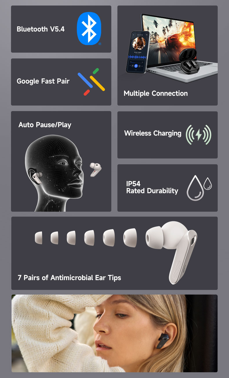 | Charging time :Fast Charging: | wired charge: about 1h (Charging case) / wireless charge: about 2h (Charging case) / about 2h (earbuds) |