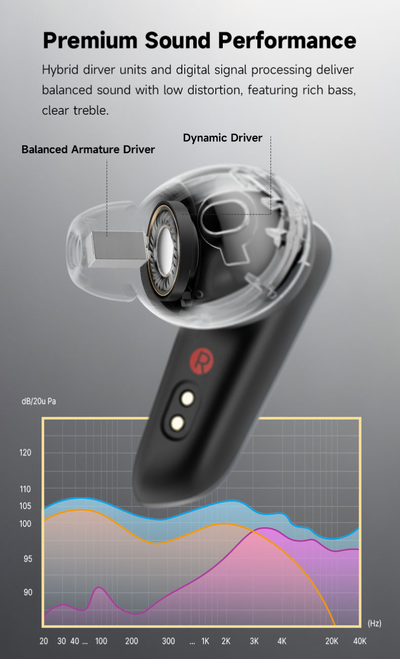 | Driver Unit: | balanced armature driver+Φ10mm dynamic driver |