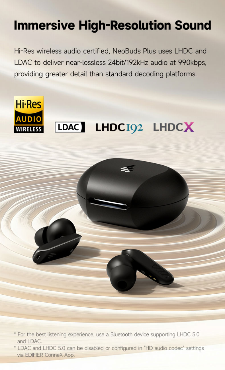 SKU: Edifier NeoBuds Plus Categories: Bluetooth Headphones, Edifier, HeadSet, In ear, In-Ear Headphones Tags: Bluetooth V5.4, Fast Charging, IP54 Dust and Water Resistance, LDAC, LHDC 192, LHDC X, Wireless Hi-Res, Starlight, Black
