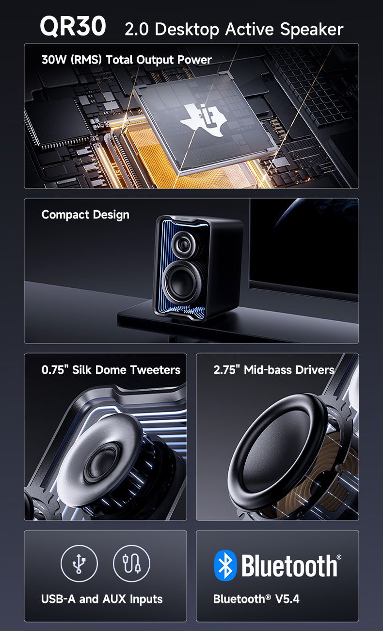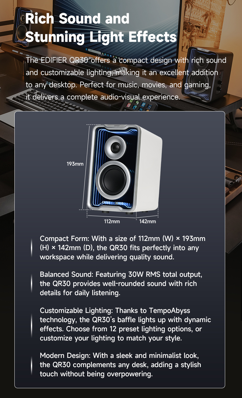 SKU: Edifier QR30 Categories: 2.0 System, Bluetooth Speaker, Edifier, USB Speaker, Best of weekly Tags: 2.0 System, AUX, Bluetooth V5.4, Edifier ConneX App, EDIFIER TempoHub App, SBC, USB-A, White, Black