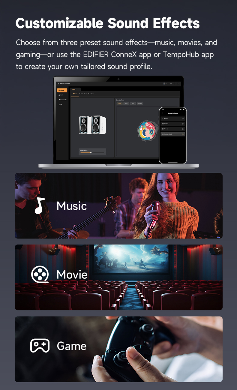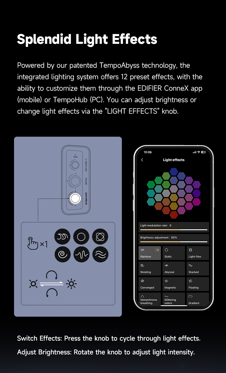 | Mobile & Computer App: | EDIFIER ConneX App / EDIFIER TempoHub App |