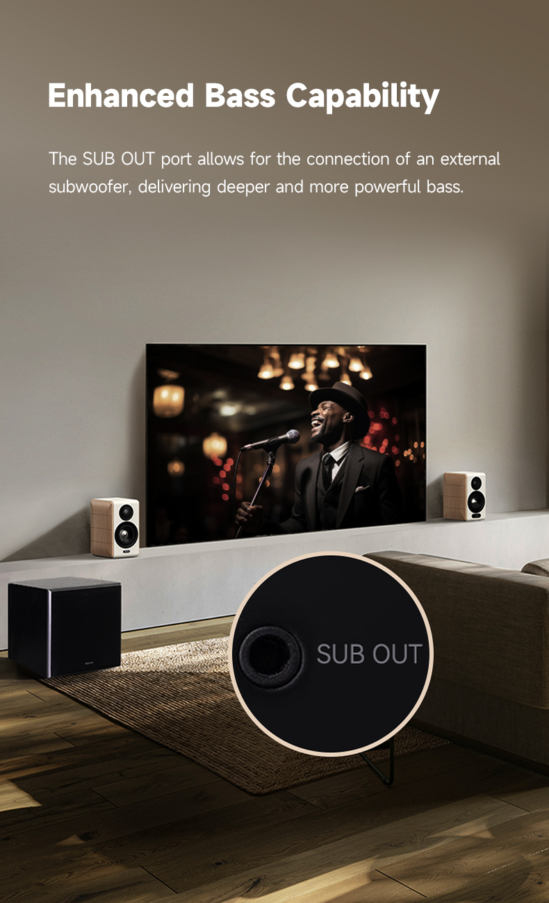 Input Sensitivity: | USB-C: 500±50mFFS / OPT: 500±50mFFS / COAX: 500±50mFFS Bluetooth: 500±50mFFS / Line In 1: 500±50mV / Line In 2: 700±50mV |