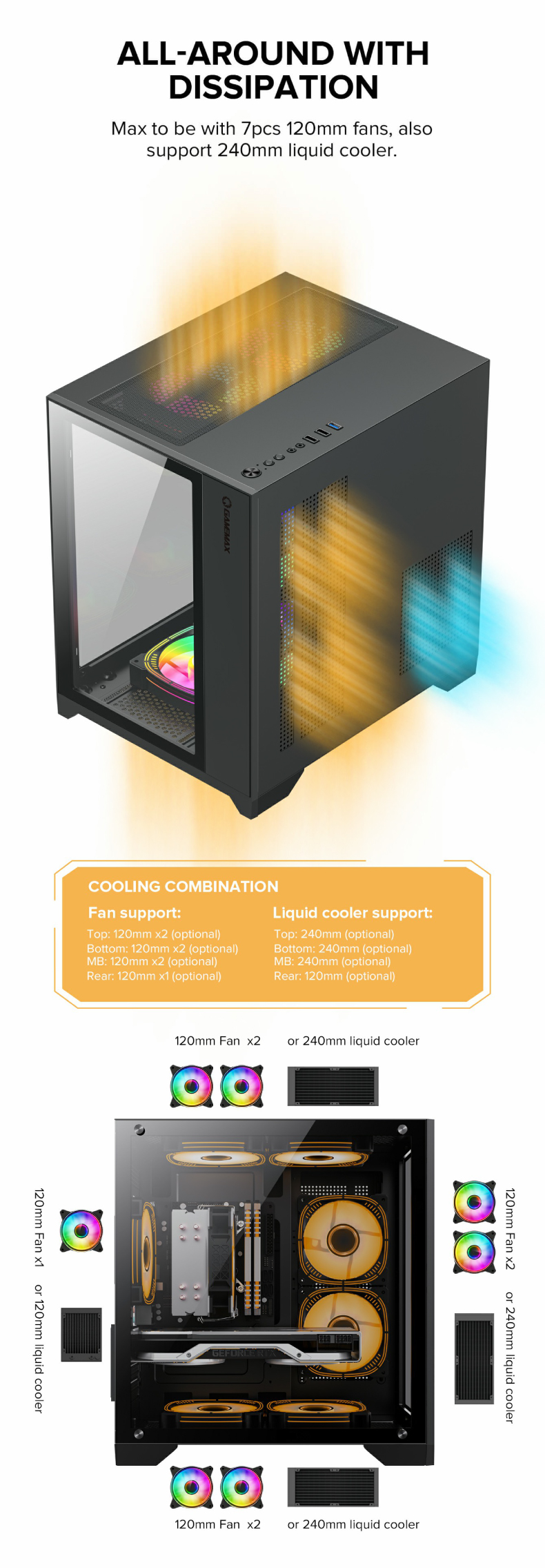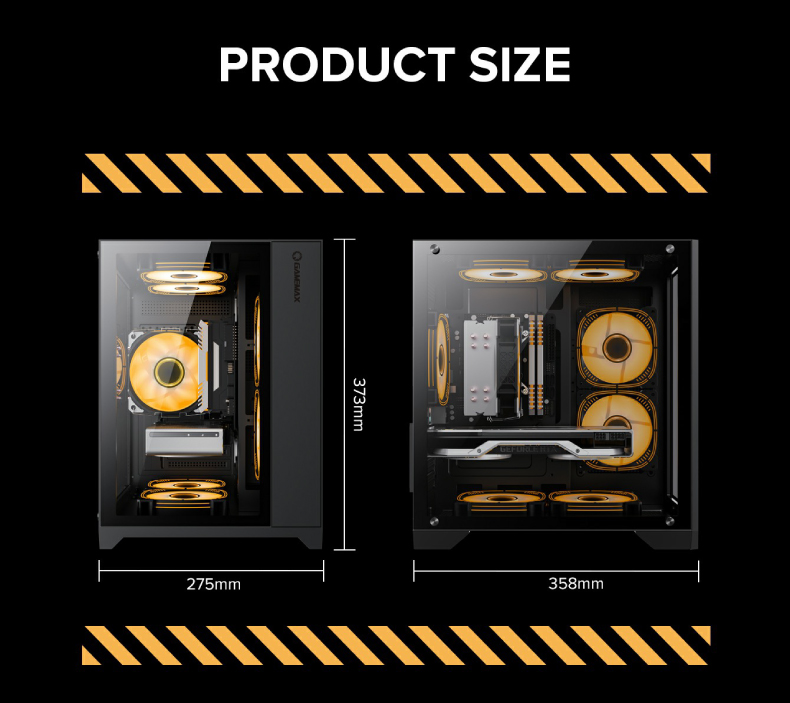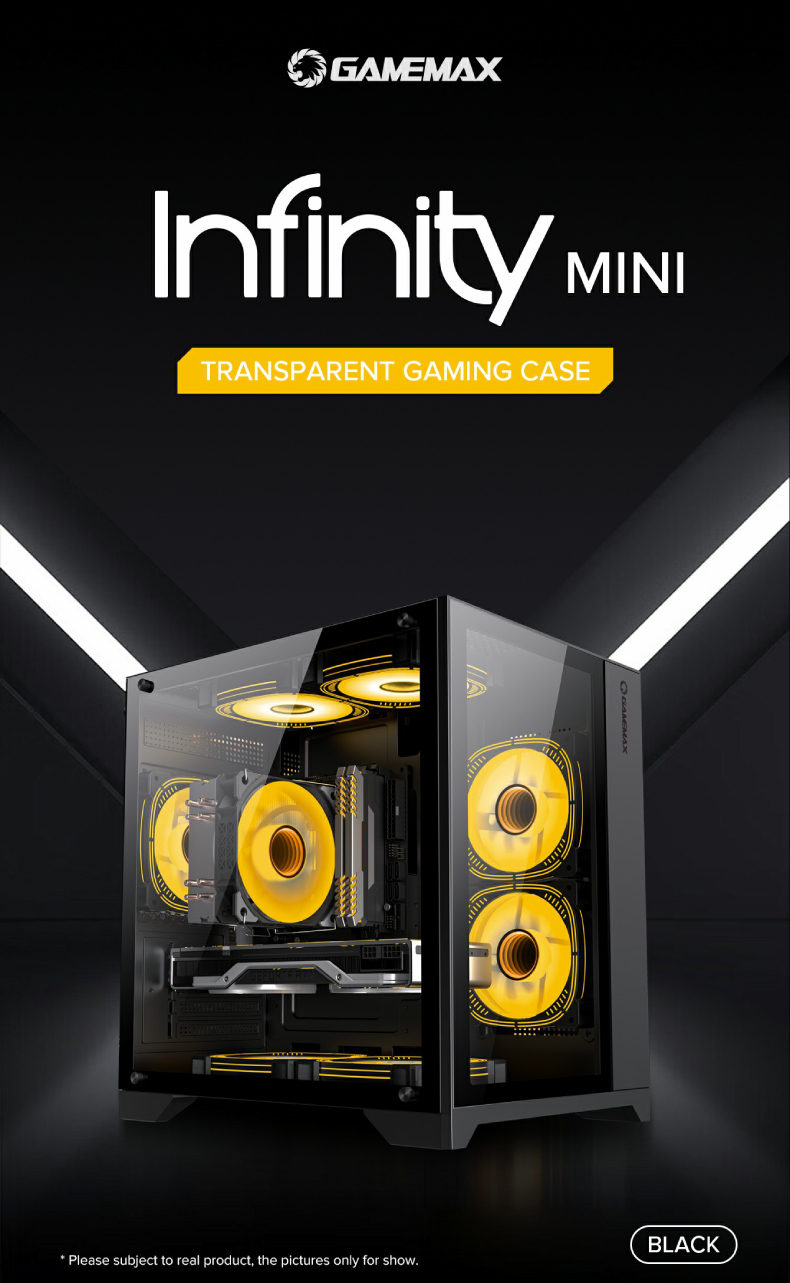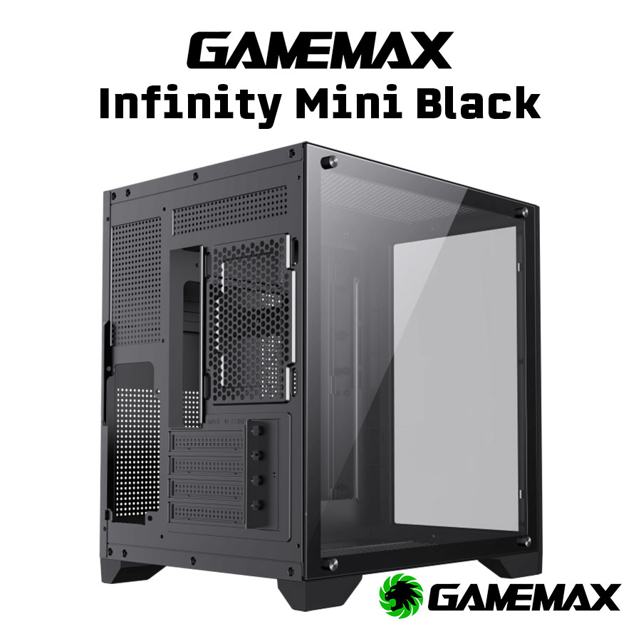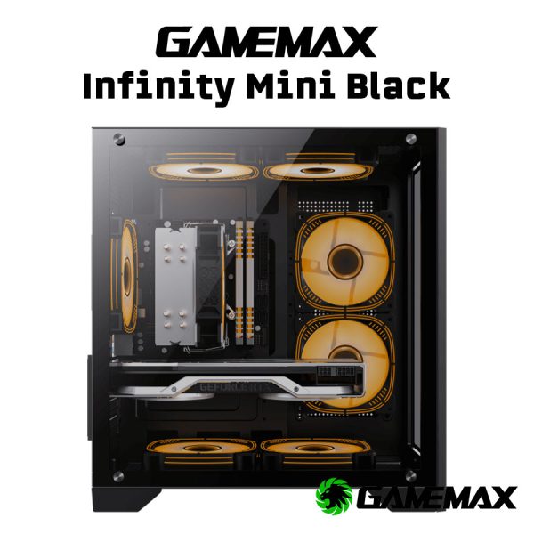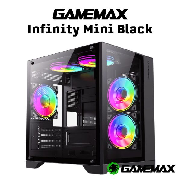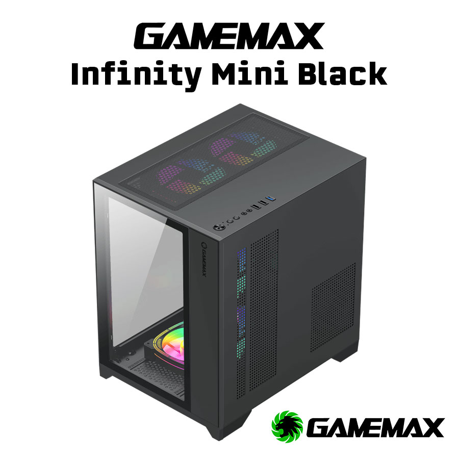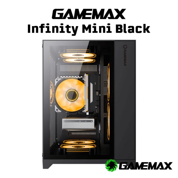 GameMax Infinity mini PC Case Supports Fix 7 ARGB Fans, Gaming PC Mini Case with 2*Tempered Glass