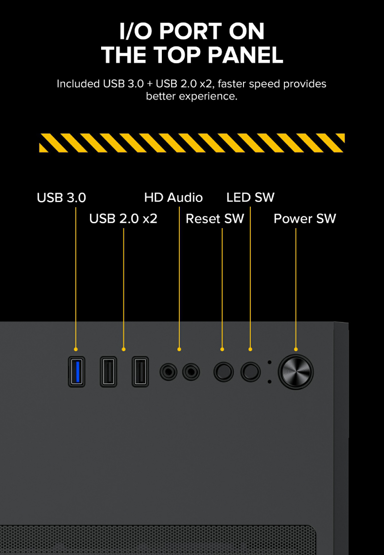 ⚡[I/O Panel]– 2 x USB2.0 Port, 1 x USB3.0 Port, 1 x HD Audio, Reset Button, Power Button.