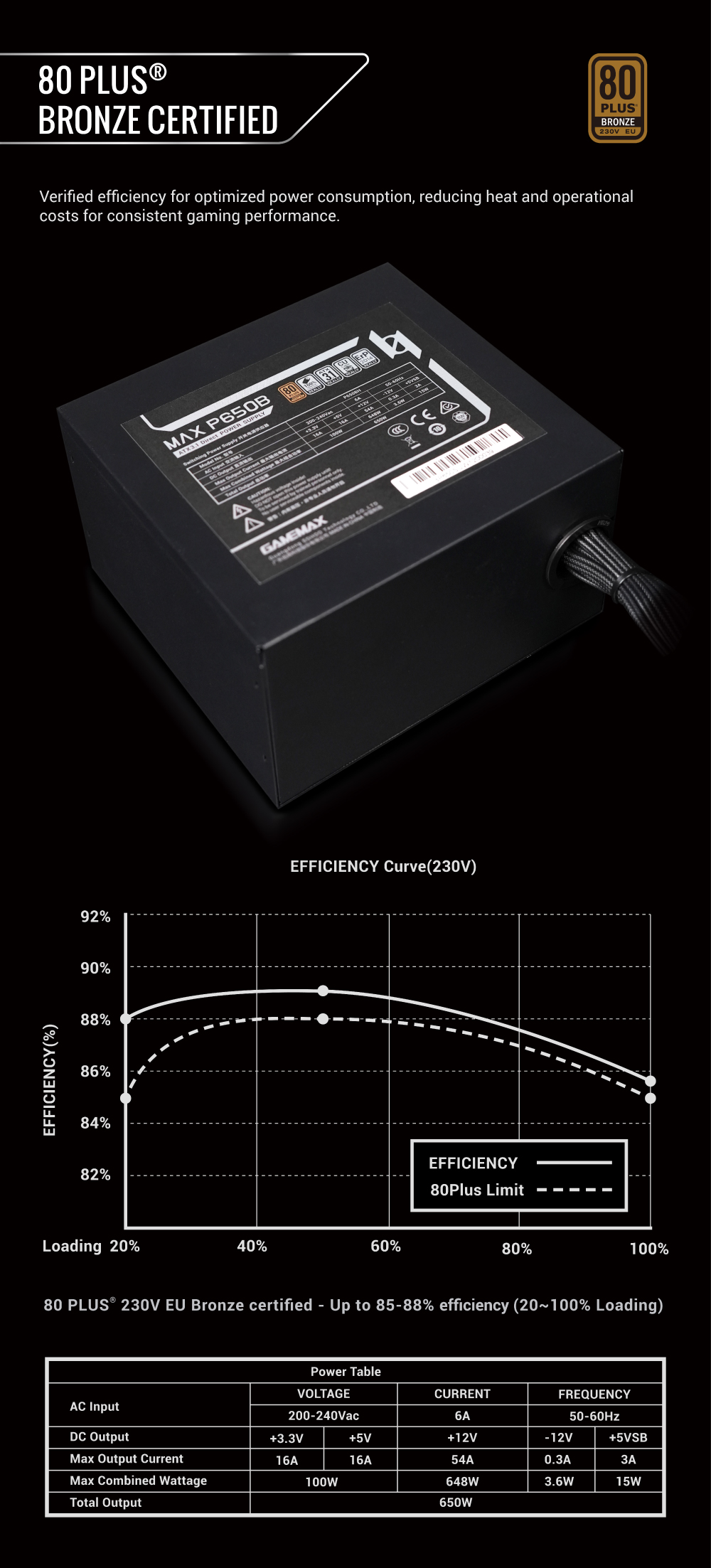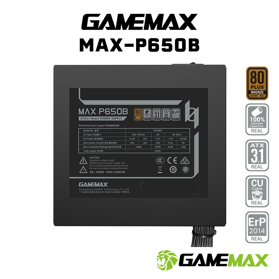 GameMax GP-650 White Elegant PSU casing with white flat cables, Designed for high performance business and gaming build and various compatibility.
