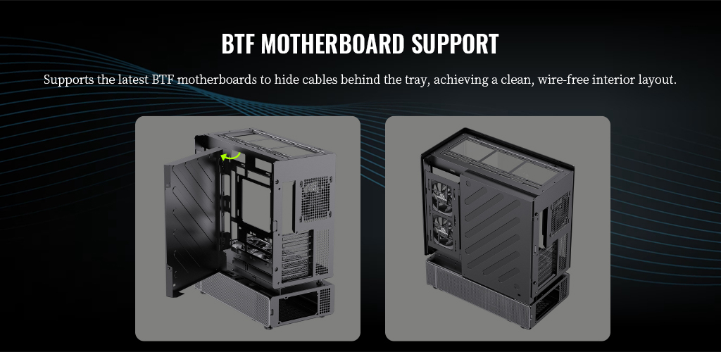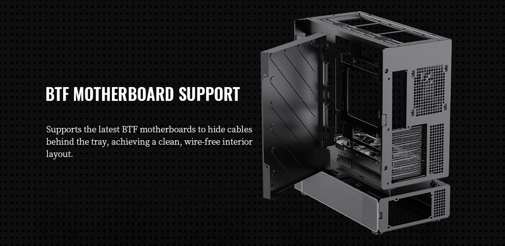 ⚡ Dedicated Support for BTF Motherboards: Compatible with the latest BTF motherboards, with cables hidden behind the tray to achieve a clean, wire-free internal layout