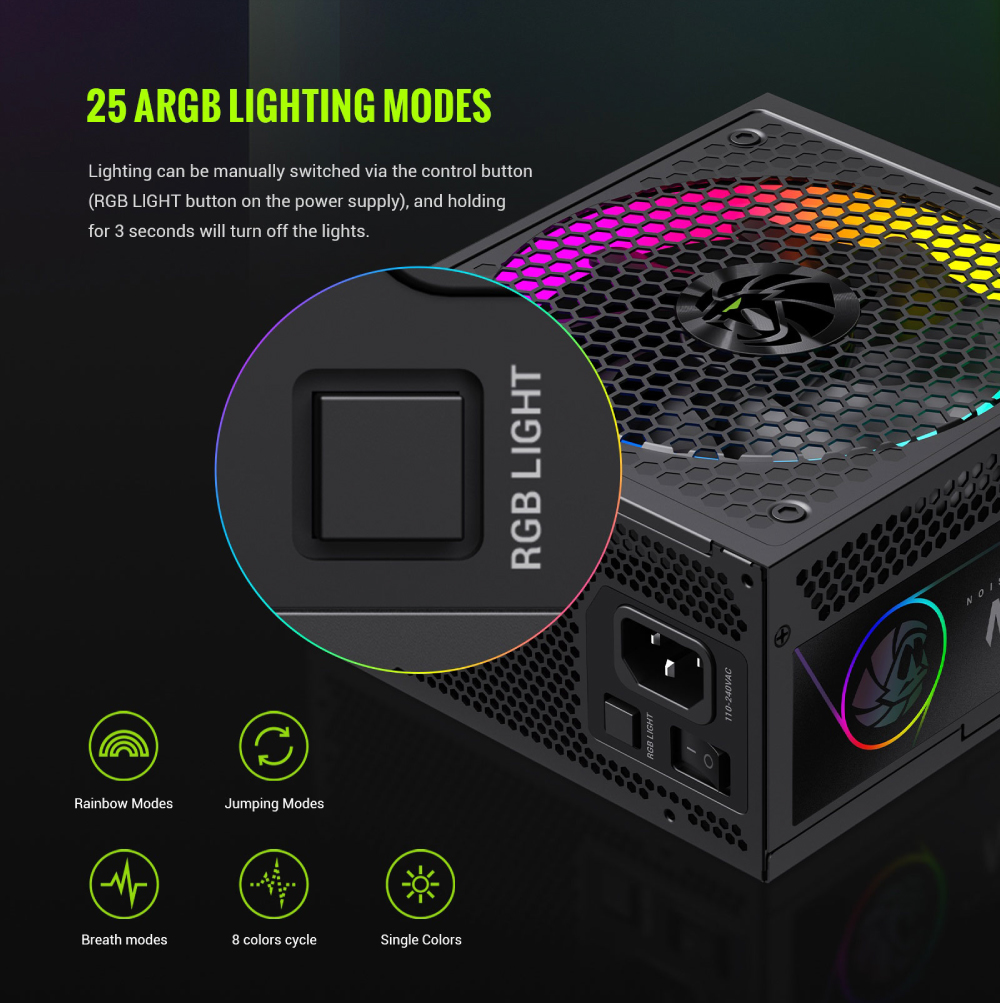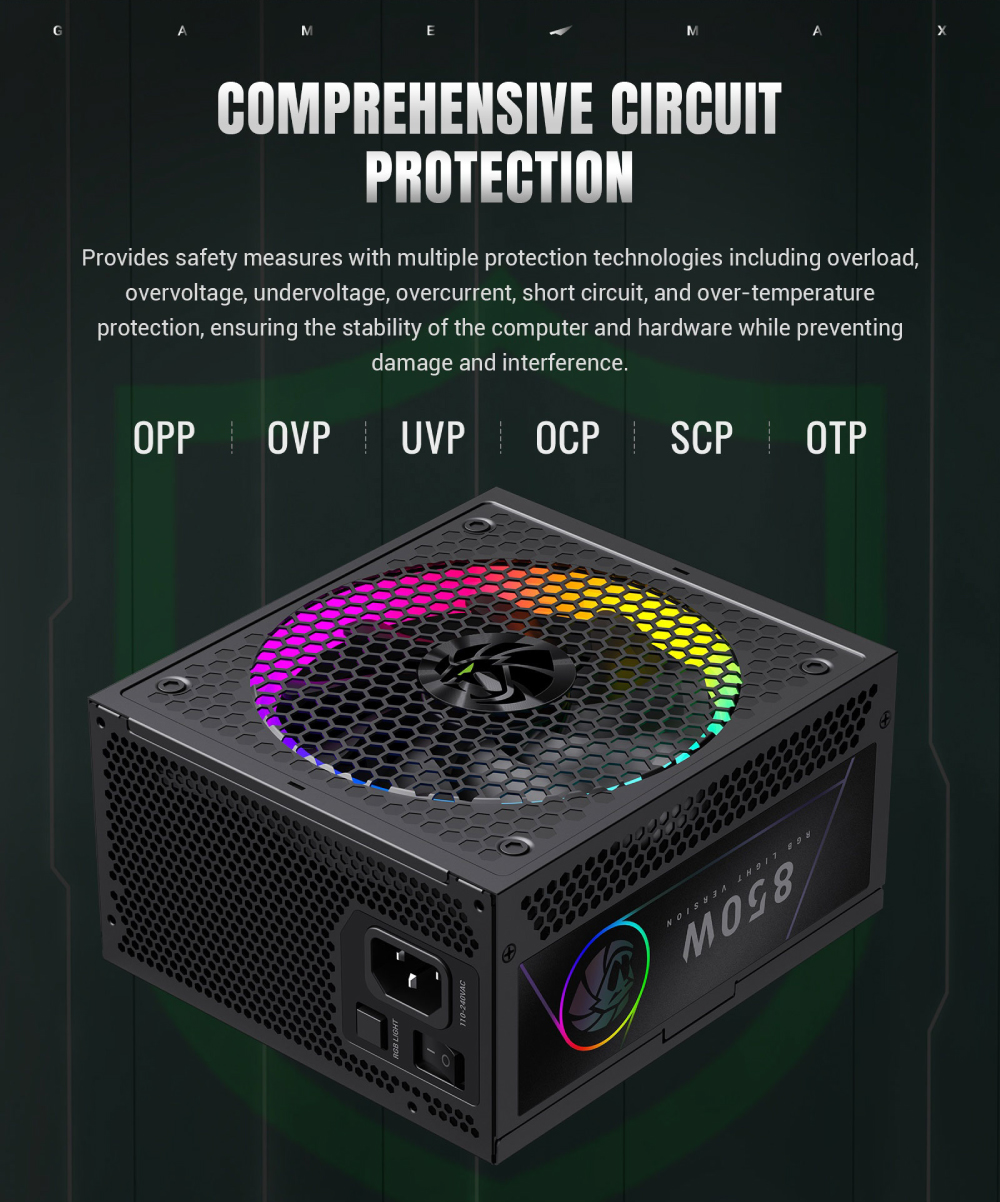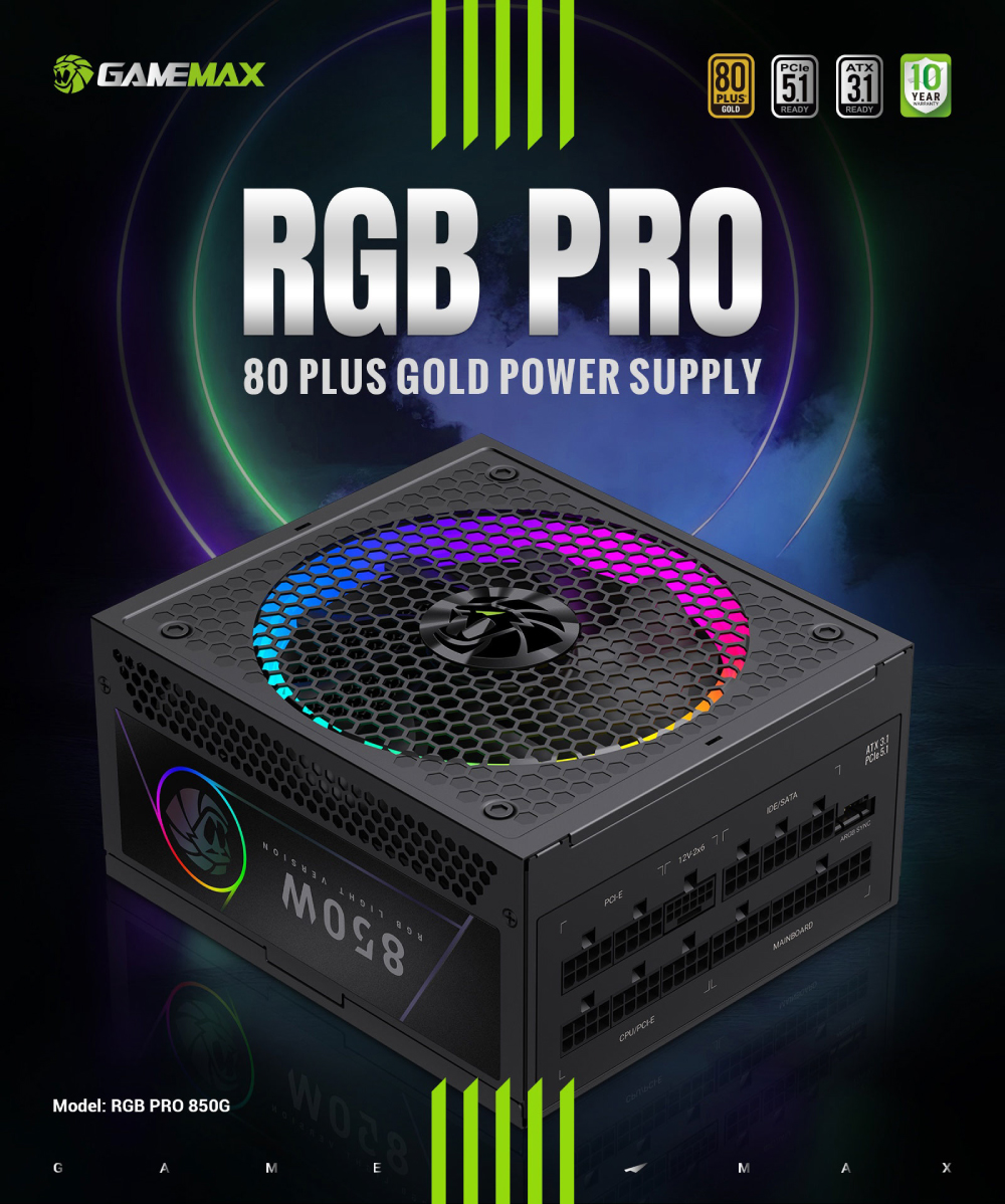 🔌 RGB PRO 850G 850W 80+ 金牌 ATX3.1 電源供應器,具備智慧風扇控制與 ARGB 同步功能