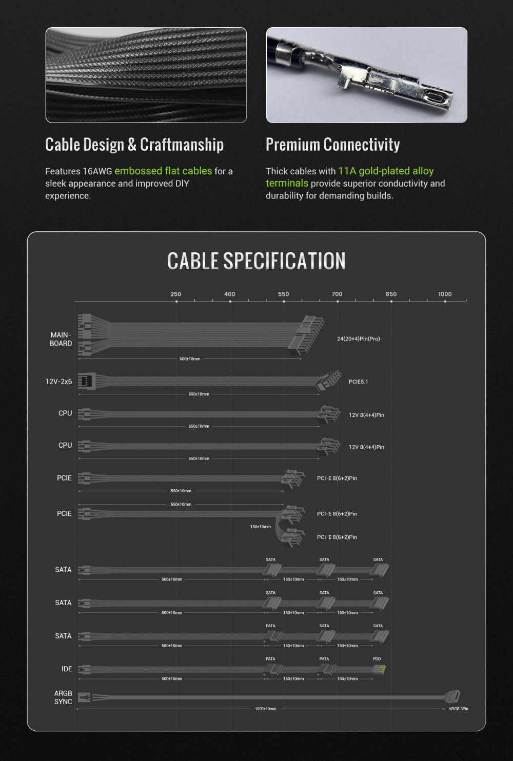 • 支援 ATX3.1 與 PCIe5.1:原生 12V-2×6 接頭可完美供電給 RTX 40/50 系列顯示卡,提升供電效率並減少能量損耗。
