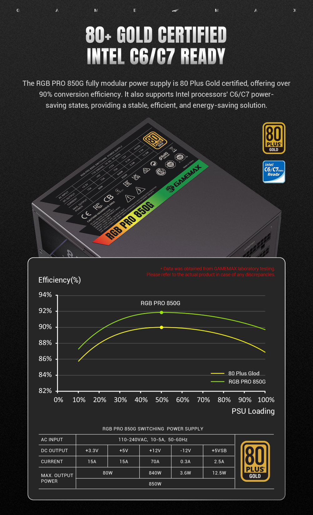 • 80 Plus 金牌效率:在一般負載下提供超過 90% 的高效能,有效降低耗電與噪音,確保穩定運作。