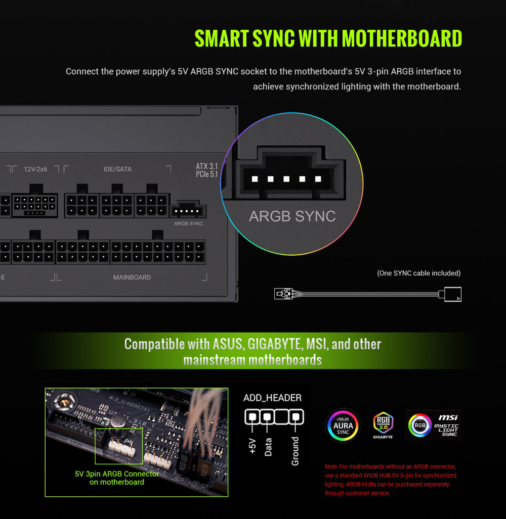ARGB 同步 可連接外部 ARGB HUB 或主機板的 5V 3pin 訊號,實現燈效同步