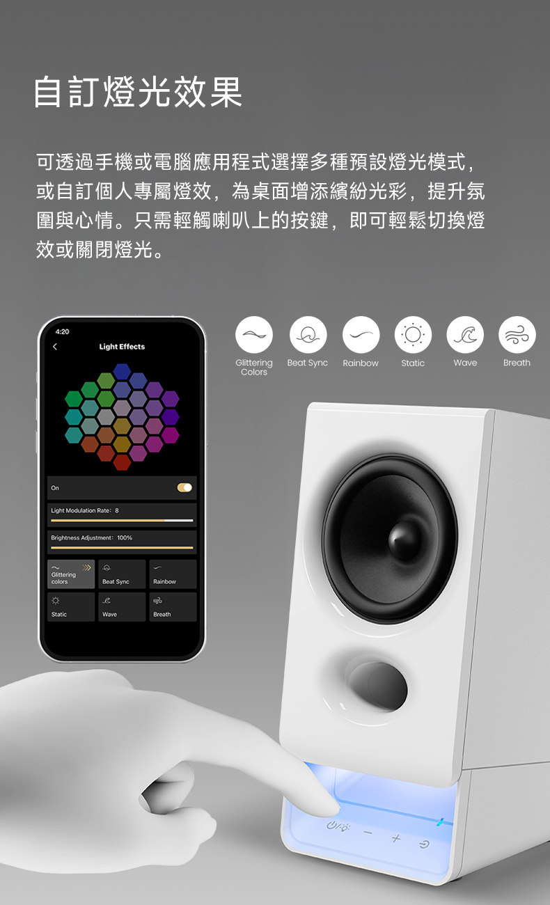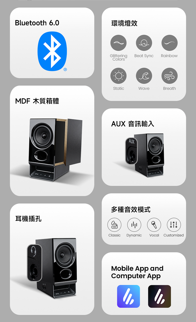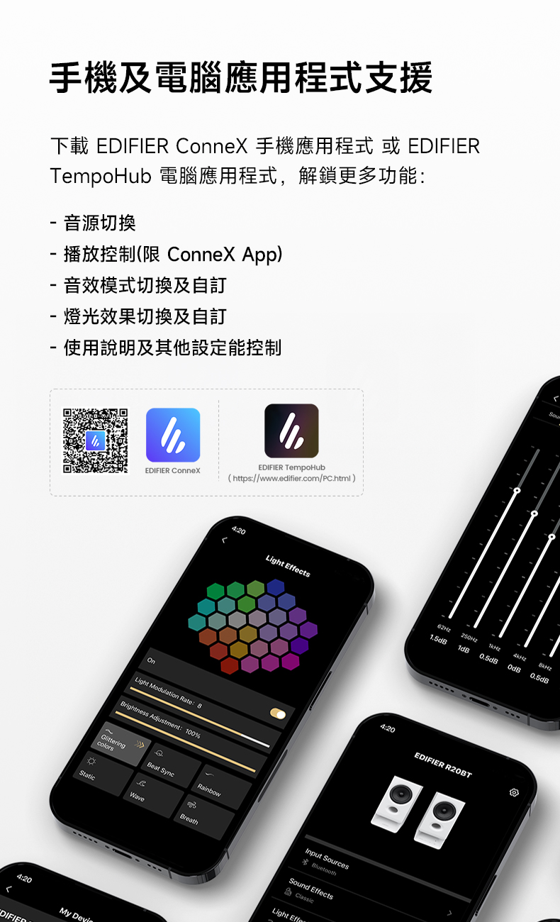 • 支援EDIFIER ConneX手機App 及 TempoHub電腦App