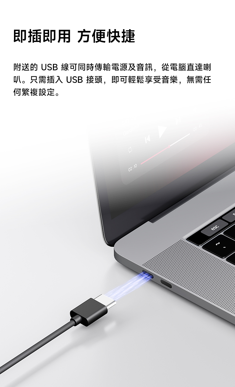 • 附1.5m USB線,連接電腦即可供電及串流音訊