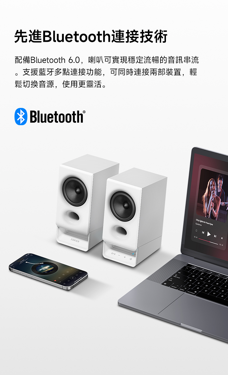 • Bluetooth V6.0支援多點連接,可同時連接多部裝置,靈活切換