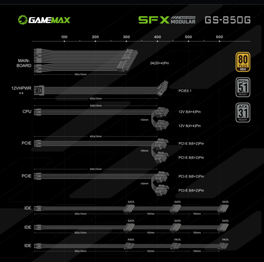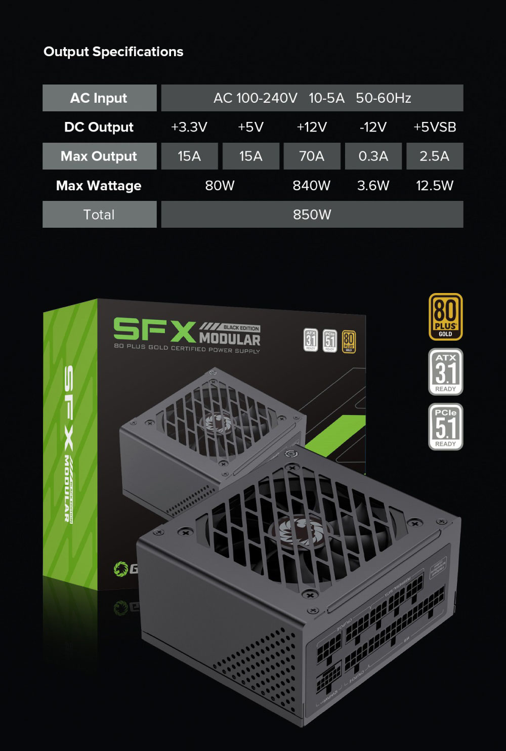 ⚡ Compact and Powerful: The SFX Modular 850W (2024) measures 125mm x 110mm x 65mm, delivering robust power in a small footprint.