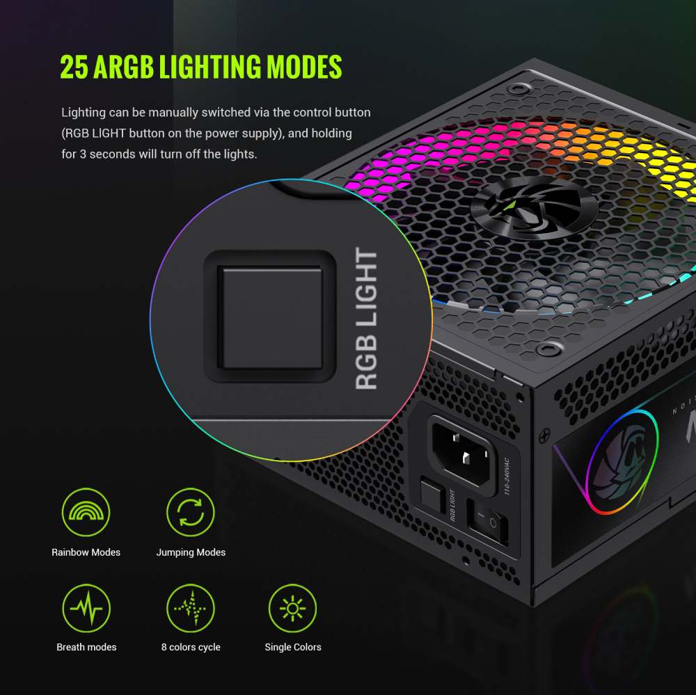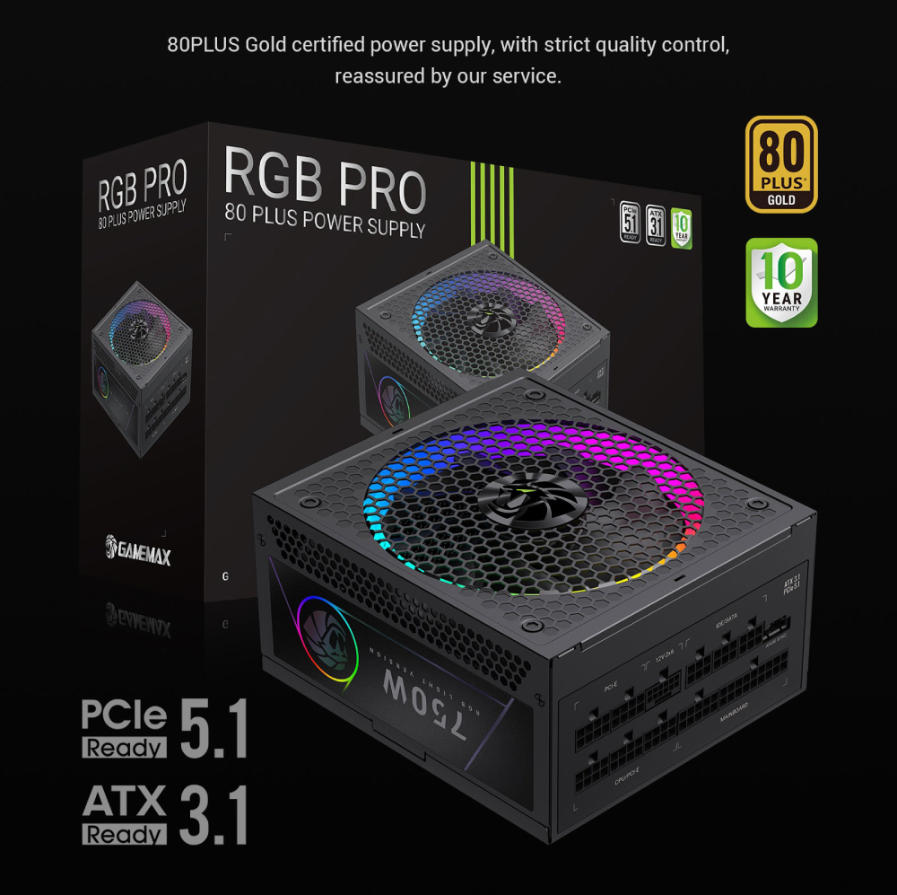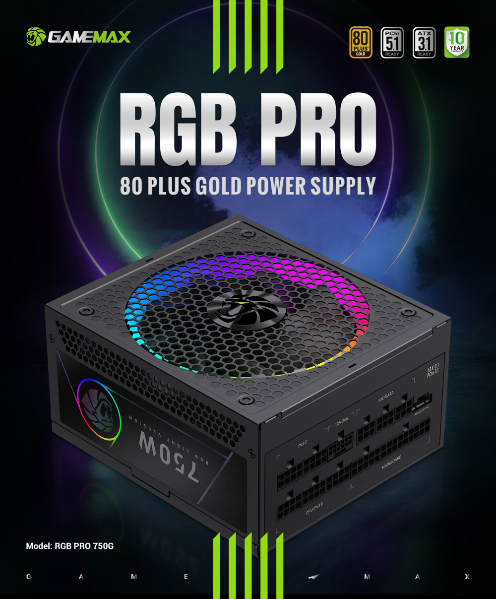 🔌 RGB PRO 750G 750W 80+ 金牌 ATX3.1 電源供應器,具備智慧風扇控制與 ARGB 同步功能