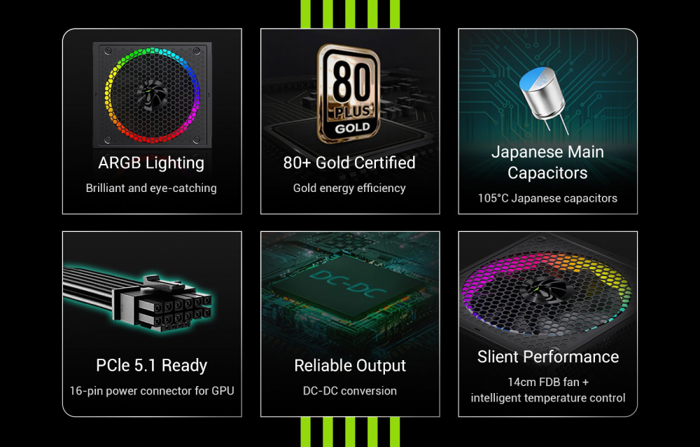 – ⚡ 80 Plus 金牌效率:在一般負載下提供超過 90% 的高效率,有效降低耗電與噪音,確保穩定性能。