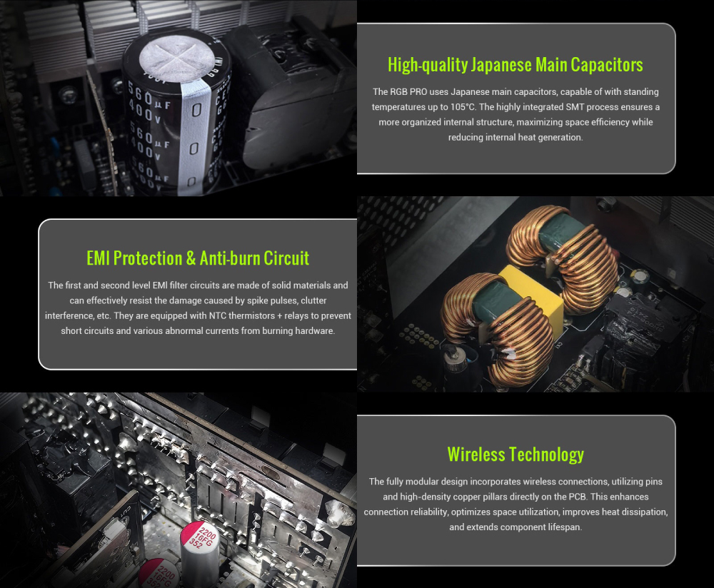 – ⚡ 高品質零件:採用日本 105°C 電容與固態電容,確保在高強度使用下仍具備耐用性、穩定性與可靠性。