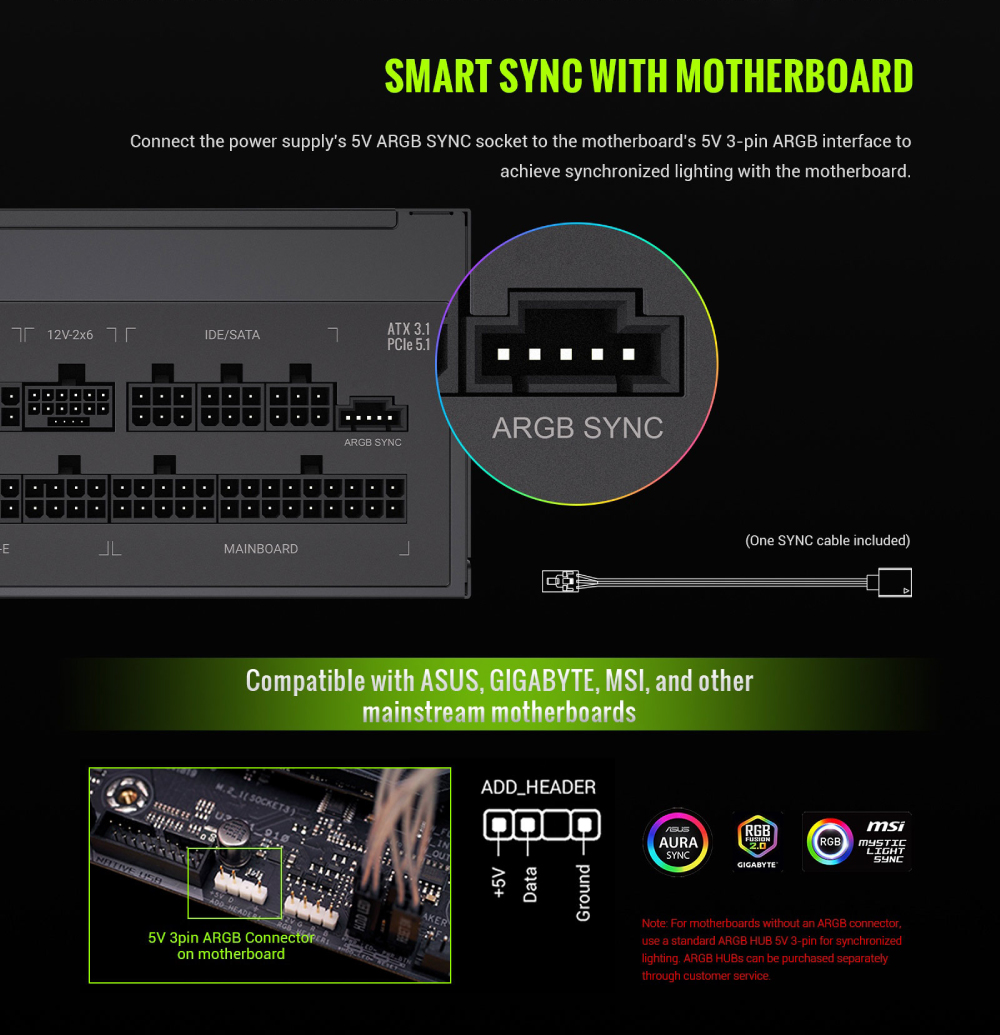 | ARGB 同步 | 可連接外部 ARGB HUB 或主機板的 5V 3pin 訊號 |