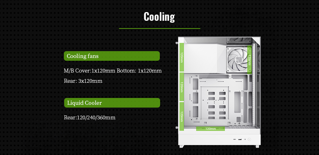 Cooling Fan – Support – Rear | 3x120mm(Fan optional) |