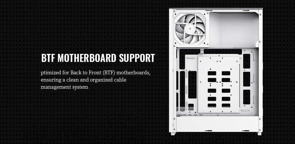 ⚡ 優化 BTF 主機板佈局:針對 Back-to-Front 主機板設計,令線材整理更乾淨俐落。