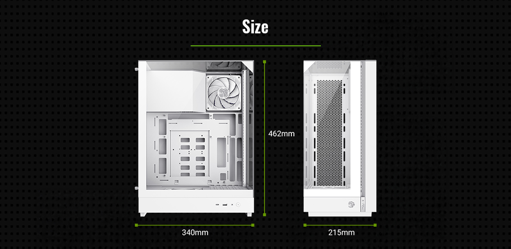 Dimensions – Chassis | (L)340*(W)215*(H)448mm |