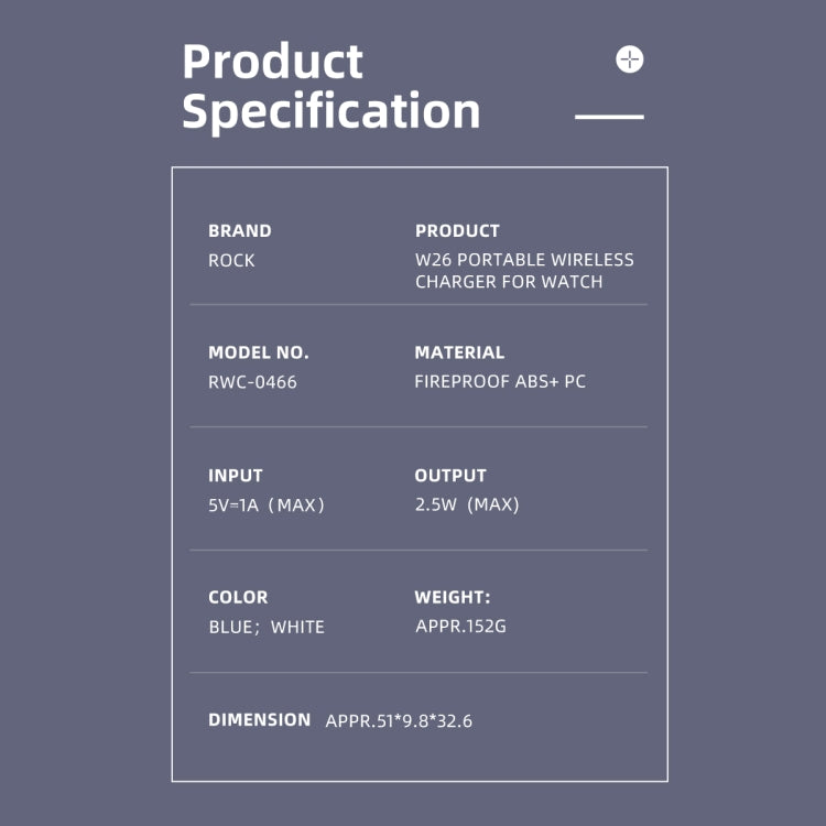 Rock W26 便攜磁吸手錶無線充電器 Type-C Port for iWatch 3/4/5/6/7
