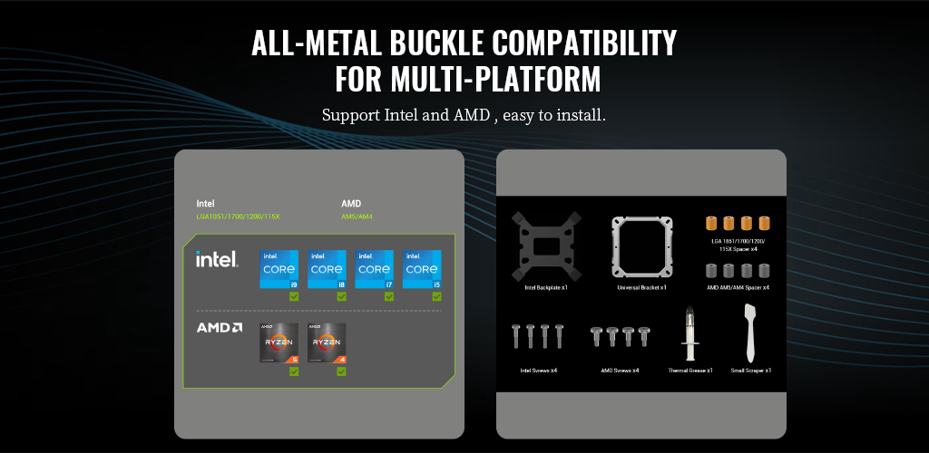 | CPU Compatibility | INTEL:LGA1851/1700/1200/115X | AMD:AM5/AM4 | ||